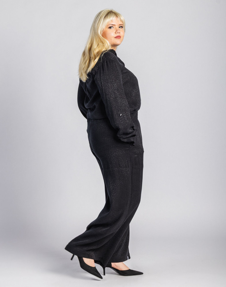 Leah-housujen ilmava ja väljä leikkaus tarjoaa mukavuutta ja liikkumavapautta, samalla säilyttäen tyylikkään siluetin. Housujen hienostunut, mutta rento tyyli sopii täydellisesti monenlaisiin asukokonaisuuksiin, oli kyseessä sitten rento päivä kaupungilla tai kevyt illallinen ystävien kanssa. Housuissa on taskut ja käyttömukavuutta lisäävä kuminauha vyötärön takaosassa.