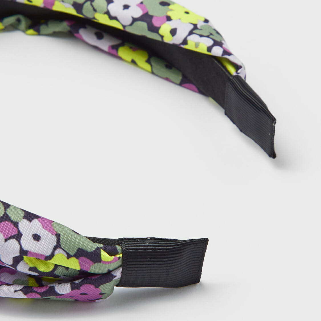 name it NKFACC-KULIE jossa tyylikäs kukka-kuosi ja solmu keskellä. Panta on mukavan joustava.